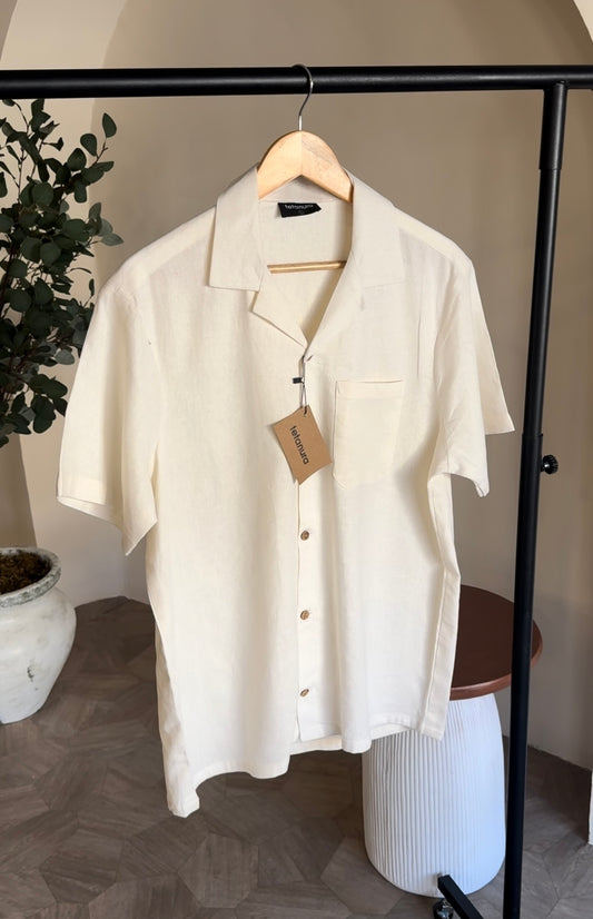 Flat collar shortsleeve linen shirt (7 COLORS)