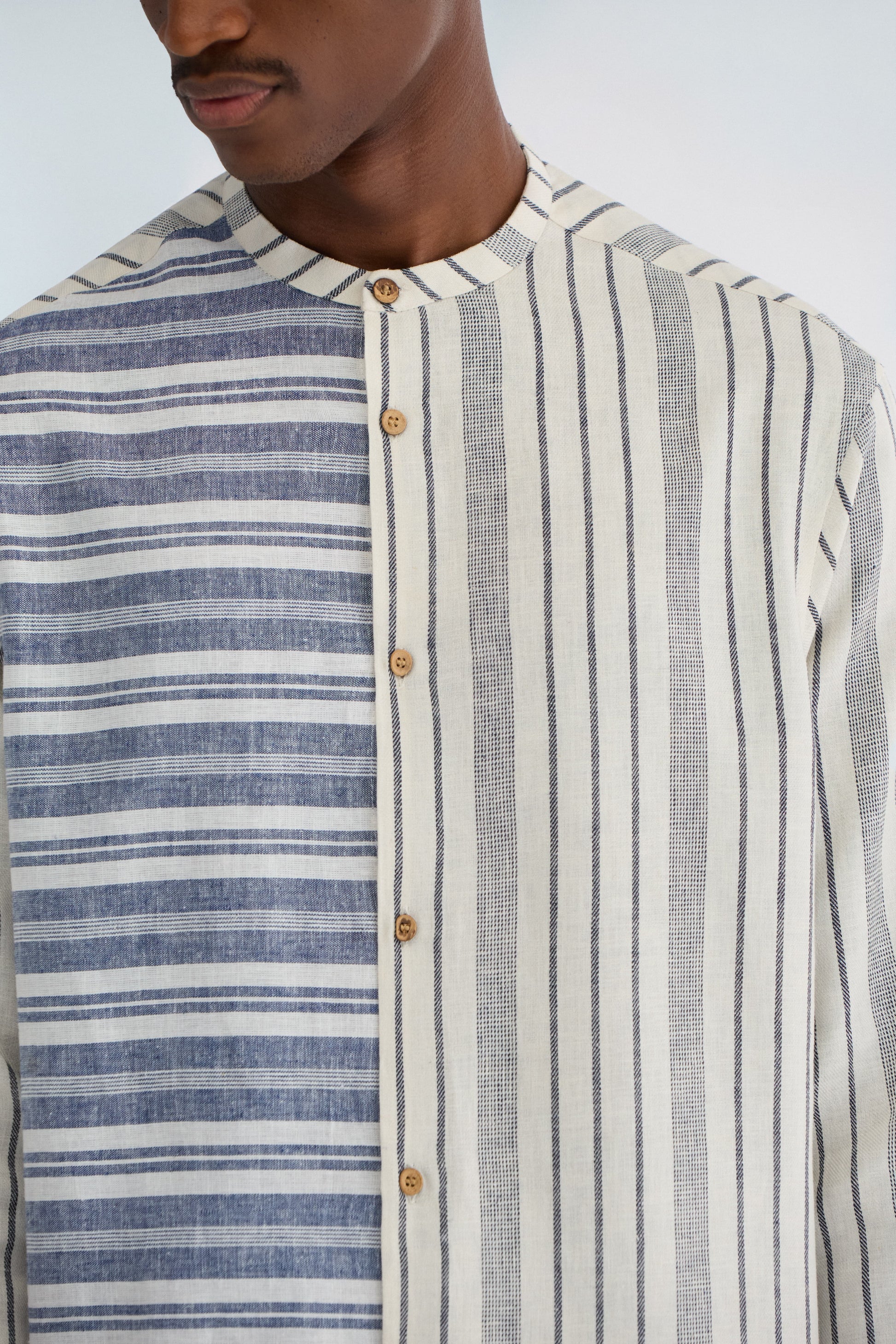 • Long-sleeve shirt with wooden button closure